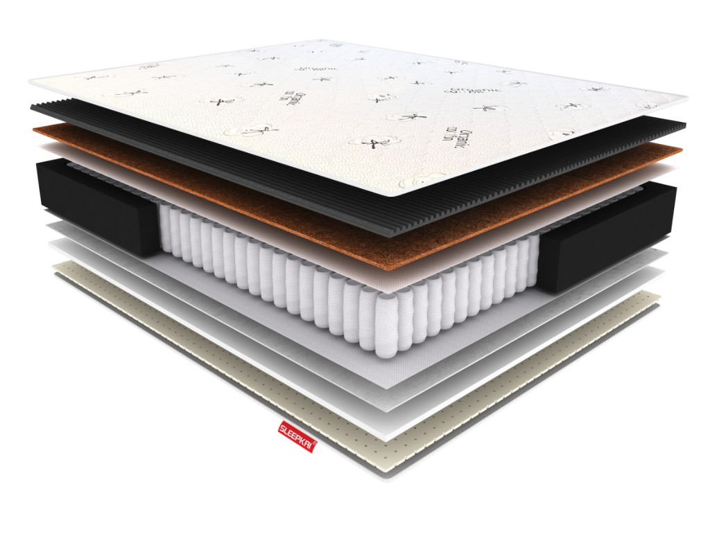Состав: Натуральный латекс, высокоэластичная пена, хлопковый войлок, латексированная кокосовая койра, Blackfoam с угольной пропиткой (7 зон).